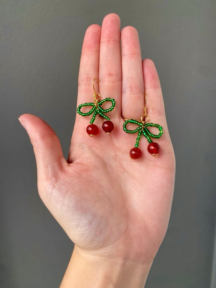 ♡ hand beaded cherries